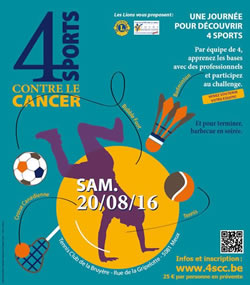 Cet objectif - 50.000 €,- sur base annuelle - a été pleinement compris par les membres du Lions Club de Haute Hesbaye qui ont organisé de mains de maître la journée des "4 sports contre le cancer" qui s’est tenue le samedi 23 août 2014.